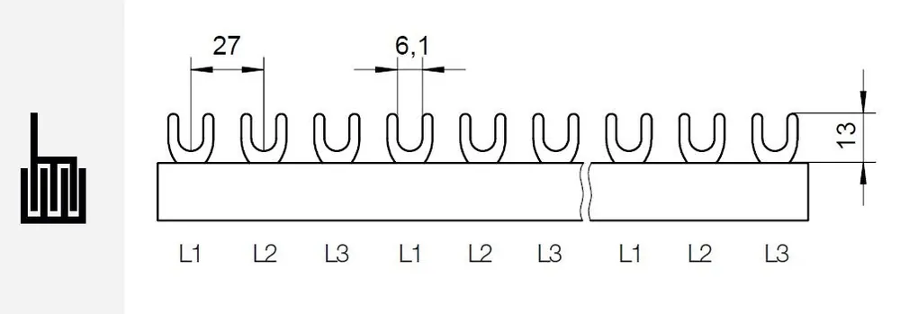 POLLMANN 2211314 Propojovací lišta G-3L-27-1000/16, vidlička, 3pól., 80A, rozteč 27mm