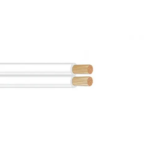 Technické parametry:Jádro: měděné, laněnéMateriál pláště: PVCNominální napětí: 300/300 VZkušební napětí: 2000 VPočet vodičů: 2Průřez jednoho vodiče: 0,35 mm²Barevné značení vodiče: neníBarva pláště: bíláTeplotní rozsah: příležitostně pohyblivé použití -15 až +70°C ( pod -5°C se doporučuje omezit mechanické namáhání )Teplotní rozsah: pevné uložení -40 až +70°COdolný proti: proti šíření plamenePoužití: vnitřníStíněný: neHmotnost: 0,018 kg/m