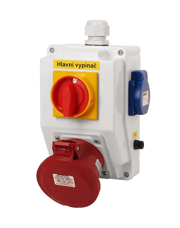 Omezená Nabídka FAMATEL sb215 Zás. krabice s hl. vypínačem 0-1 SB215 IP44 1x230V/16A, 1x400V/32A/5
