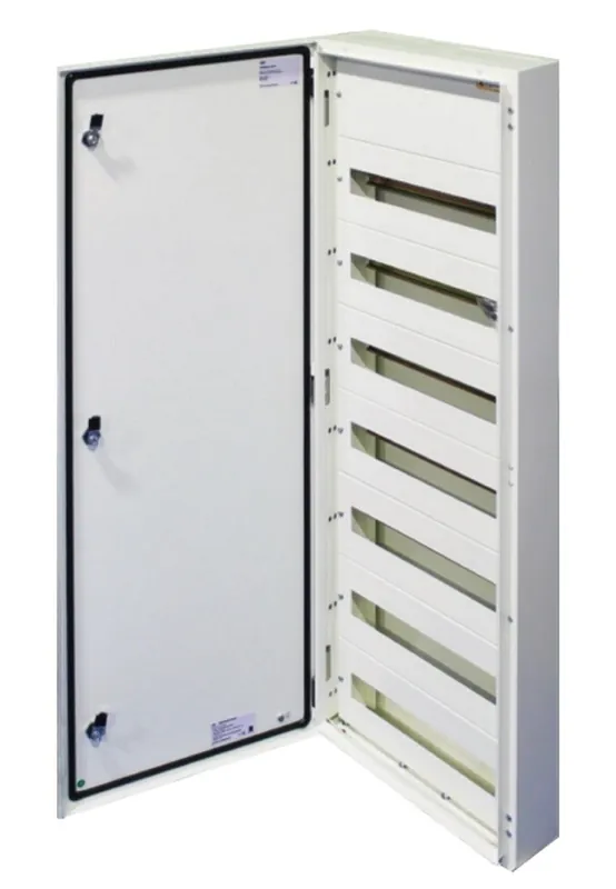 Technické parametry:Barva: bílá (RAL9010)Montáž: na povrch, pomocí přídavného rámu ( viz níže ) je možná i montáž pod omítkuPočet řad v rozvaděči: 7Počet modulů v řadě: 24Počet modulů celkem: 168Typ uzávěru: 3 bodovýMateriál: kovDveře: plnéSvorkovnice: PE/N svorkovniceMechanická odolnost: IK08Hmotnost: 36 kgRozměry: 1250 x 600 x 125 mmStupeň krytí: IP65