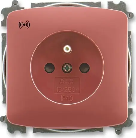 Víkendová Akce ABB 6689A-A06357 R2, TANGO Zásuvka s přepěťovou ochranou, s clonkami, s akustickou signalizací poruchy (typ 6619); vřesová červená